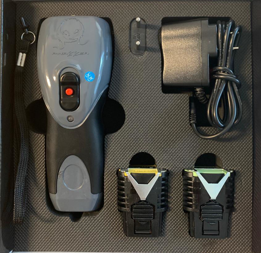 The PhaZZer Dragon Conducted Energy Weapon (CEW) is a personal self-defense weapon that is capable of firing all PhaZZer Dart Cartridges and provides the same effective take-down power as any Electronic Control Device (ECD) on the market. It may also be used to drive stun a target for hand to body contact. This CEW features our Circuit Disconnect Rip Cord Technology, which will disarm the Dragon if it is detached from the unit making this an ideal weapon for Correction Agencies. U.S. Pat. No. 7,554,786, US and Foreign patents pending